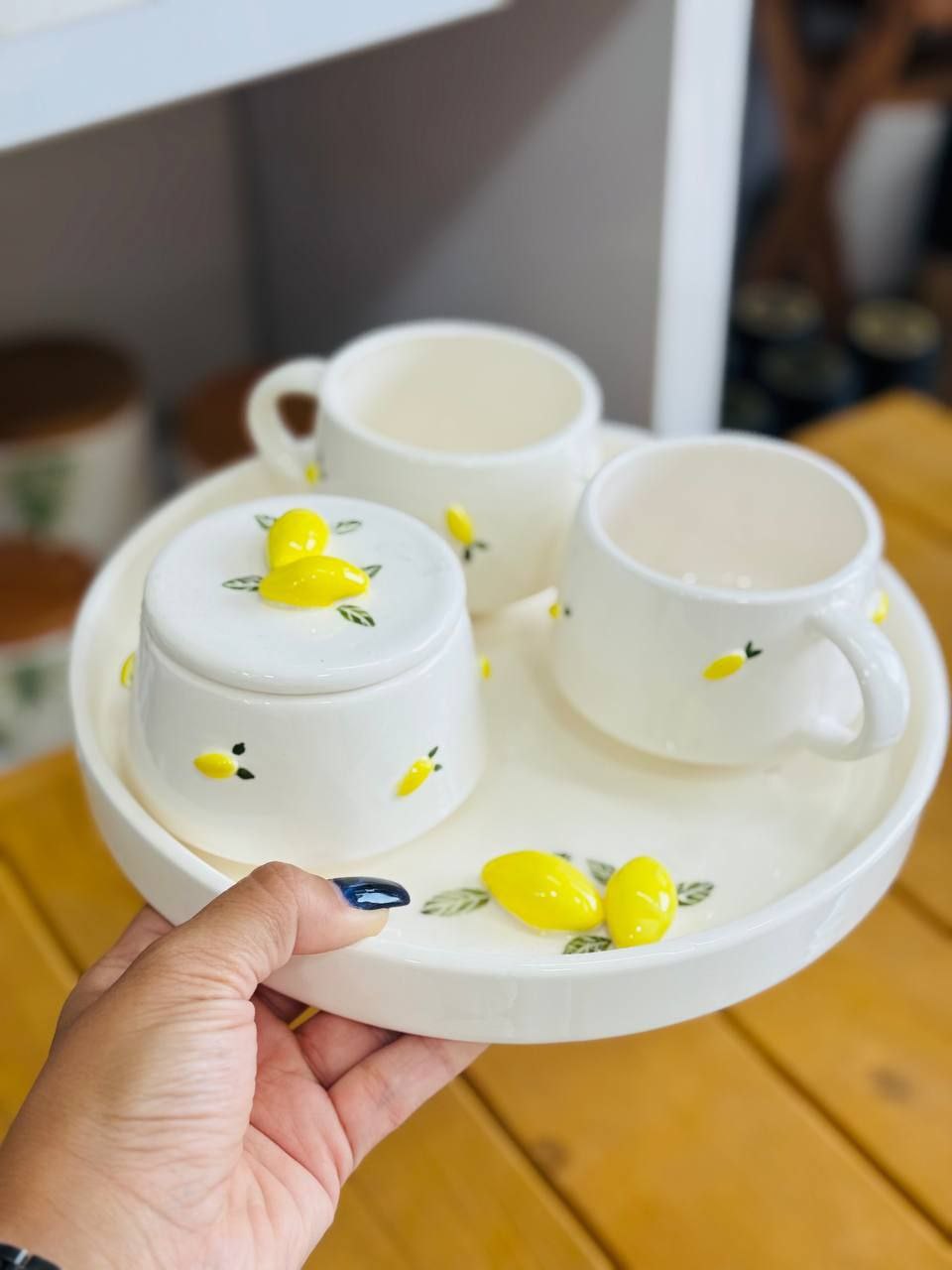 ست فنجان، قندان و سینی لیمویی یک سرویس شیک و پرانرژی با طرح لیمو است که فضای میز را روشن و جذاب میکند. این ست شامل دو فنجان هماهنگ، قندان کاربردی و سینی طرحدار است که هم برای پذیرایی مهمان و هم استفاده روزمره بسیار مناسب است. سبک فانتزی و رنگهای شاد لیمویی آن، این محصول را به یک انتخاب عالی برای دکور آشپزخانه و هدیه تبدیل میکند.