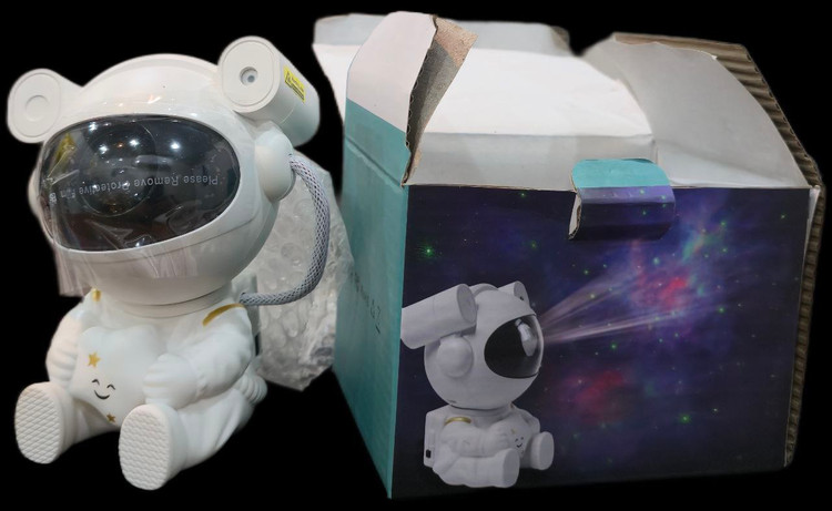 چراغ خواب کهکشانی آدم فضایی با کابل به برق یا لب تاپ یا پاوربانک وصل میشه .در ستاره و کهکشان داره رنگهاش تغییر میکنه ونور کم وزیاد داره