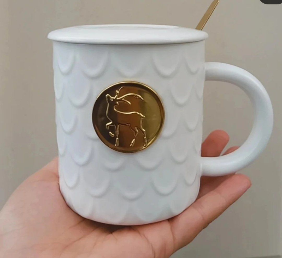ماگ سرامیکی پلاک دار قاشق طلایی کادویی